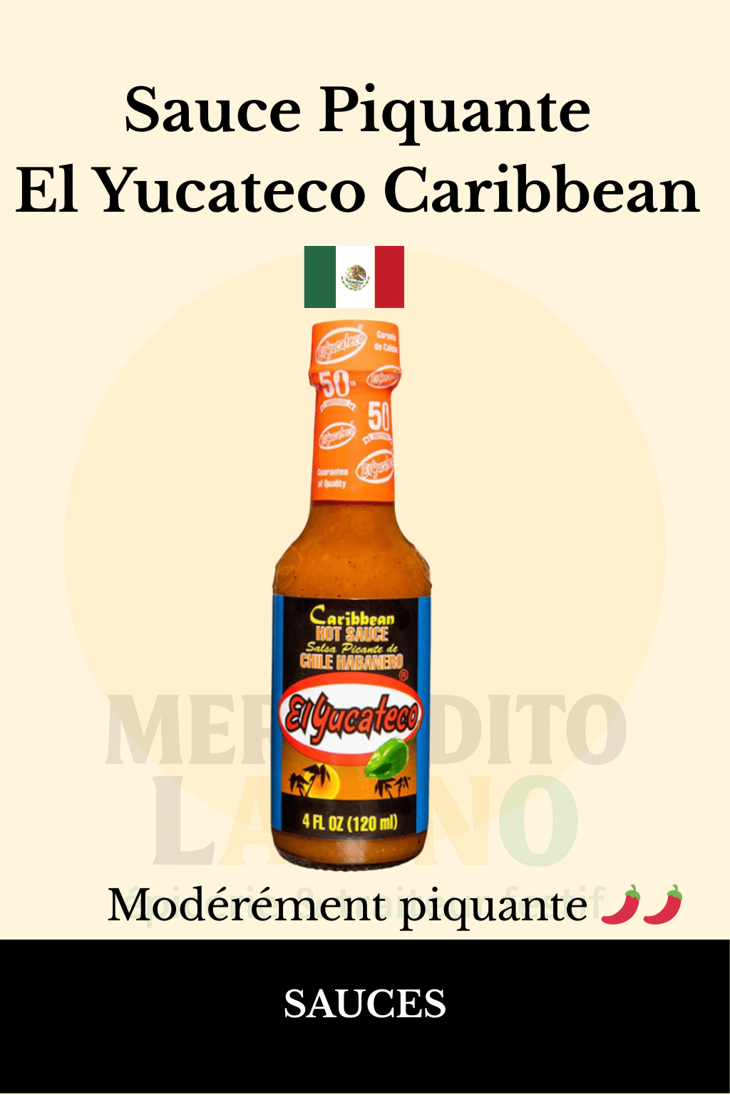 La Sauce Piquante El Yucateco Caribbean 120ml est une sauce mexicaine au piment habanero, inspirée des saveurs caribéennes 🌶️.